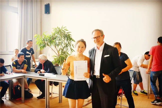 袁欣璐:去德国之前我是一点没接触过德语的。临走的时候我去书店里买了一本《德语300句》,没事的时候就看看。其实到德国后不用太过担心语言问题,基本上许多德国人都会说英语,日常交流基本不受影响,就是上课的时候,老师用德语授课,原话听的不是很明白,但是随行的翻译基本上会给我们做耐心详细的解释,所以参加这个项目,语言上基本不用担心。