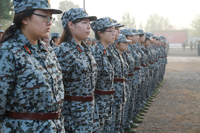 清晨6点,伴随着起床号响起,同学们起床十分钟整理内务时间;6点10分,各连队列队完毕,在军训教官的带领下迎着晨曦开始早操、列队训练;6点50分,女生用餐时间,7点30分男生的用餐时间,同学们在餐桌旁整齐站立,教官用餐口令下达后大家秩序用餐;从8点开始,是操课时间。