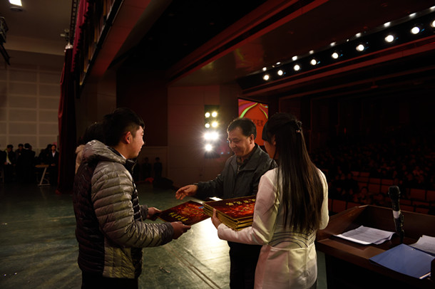 梅花香自苦寒来,在“冬―傲雪冬梅奖”篇章,学院对在学习学业上取得好成绩的同学进行表彰。党委副书记沈自有老师宣读表彰决定,刘军书记、刘学杰主任、万玲莉处长、毛利处长、金宪处长等领导、老师分别上台为获奖同学颁发奖状。国家奖学金获得者关永浩作为获奖代表与同学们进行了交流,他说自己的成功没有诀窍,就是更加努力,更加刻苦。词句朴实无话,但字字珠玑。