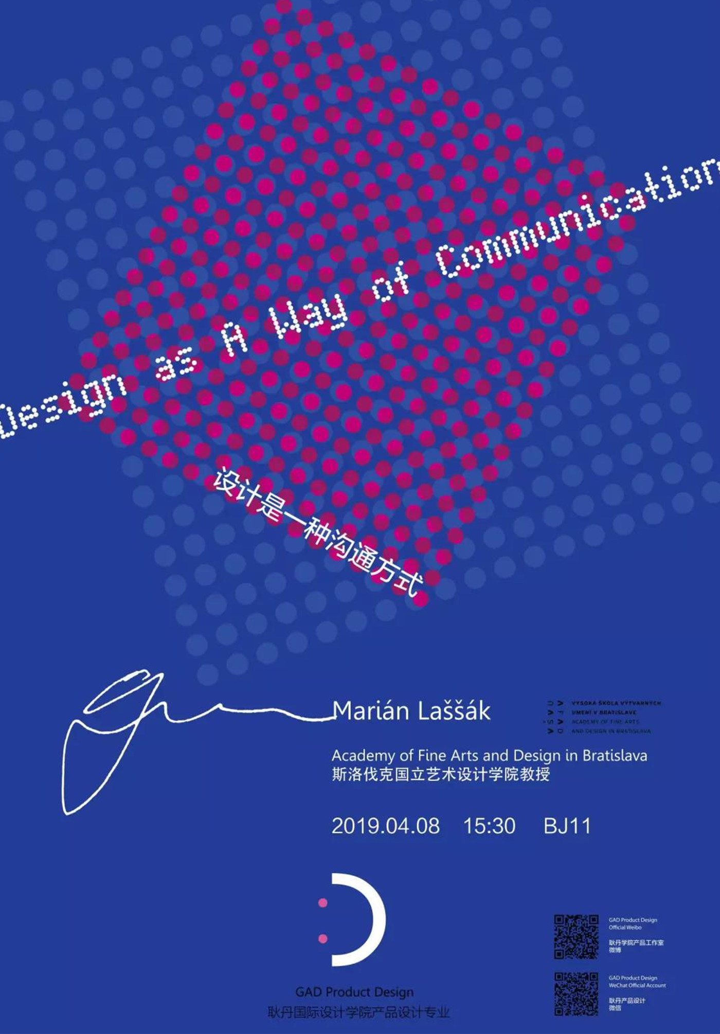 讲座主题为“设计是一种沟通方式”。Marián教授认为设计应该是沟通人与物品的一种方式,好的设计应与使用者产生共鸣,唤起使用者的记忆和情感。设计师需要优于常人的感知力,能注意到生活中人们细微的情感变化以及产品在人们生活中的作用和地位,并将此与设计相结合。Marián教授展示了斯洛伐克学生的作品案例,这些案例很好的体现了设计对于沟通人与物的重要性。