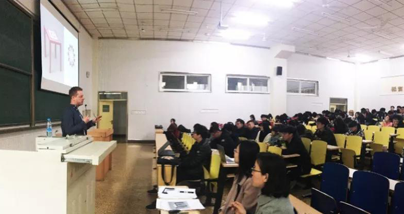 On April 8, Professor Marián Laššák from Academy of Fine Arts and Design, Bratislava gave a lecture at Gengdan Academy of Design under the invitation of Head of the Product Design program. The participating teachers were: Shi Xiaoming, Head of Product Design Program, International Office Director Chen Lijun, Visual Communication course teacher Zhang Xinxin, two Product Design course teachers Li Zhonghao and Zhang Wei. Students from Product Design program attended the lecture too. English teachers Zhang Juan and Rui Yanfang acted as interpreters.