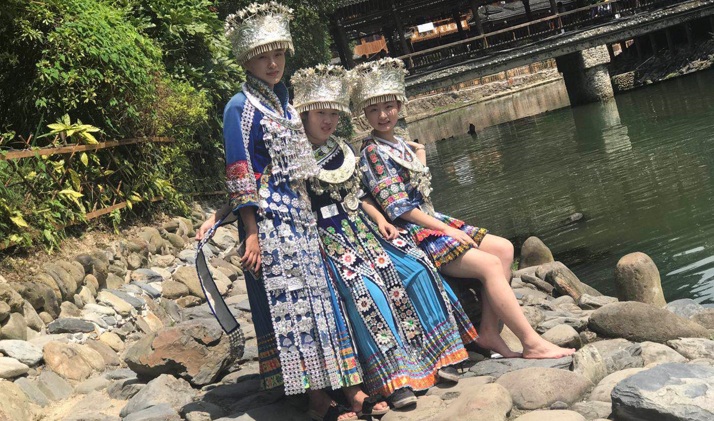“贵州文化之旅”活动中,学生们对贵州黄果树瀑布、荔波小七孔、西江千户苗寨和镇远古镇进行了考察,对当地的建筑风格、民俗文化,饮食文化和服装进行了调研。学生们根据不同的选题去实地考察和动手操作,学习各族服饰搭配、手工纸张制作、房屋设计、银饰制作,调研活动丰富多彩,学生们热情高涨。