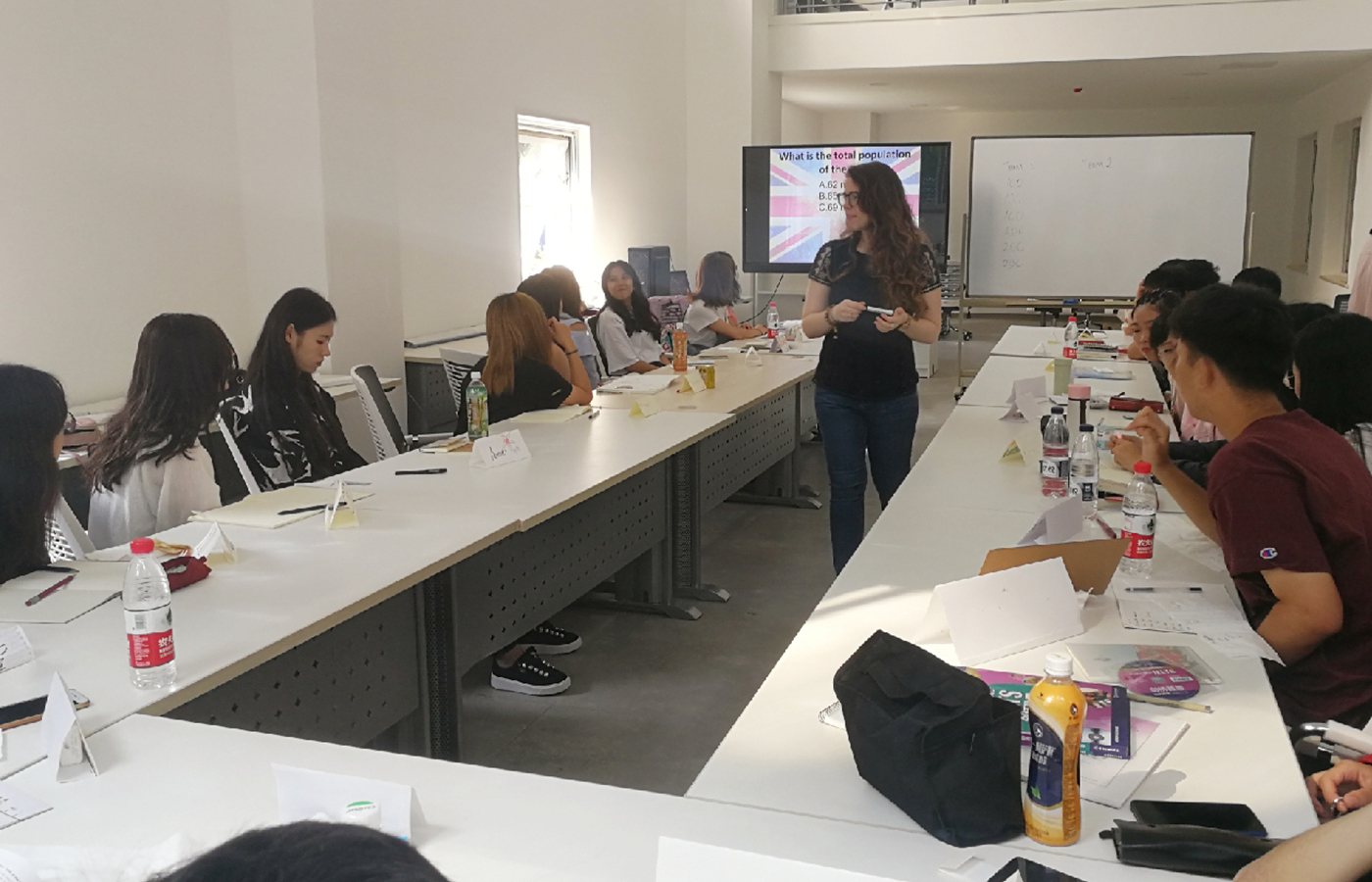 最开始上Nicola英语课的时候大家都有点拘束,但是到后来由于Nicola经常给我们做一些组内活动,调动起大家都积极性,大家也都积极参与进来了。在上杨娜老师的英语课的时候,杨娜老师总是会顾及到我们每个人的情绪,看到大家闷闷不乐会带着大家做些小活动然后送小礼物给我们,当然也将这节课的内容讲解的很清晰,让我们学到很多知识,让我们更加大胆的英语去表达自己的想法。