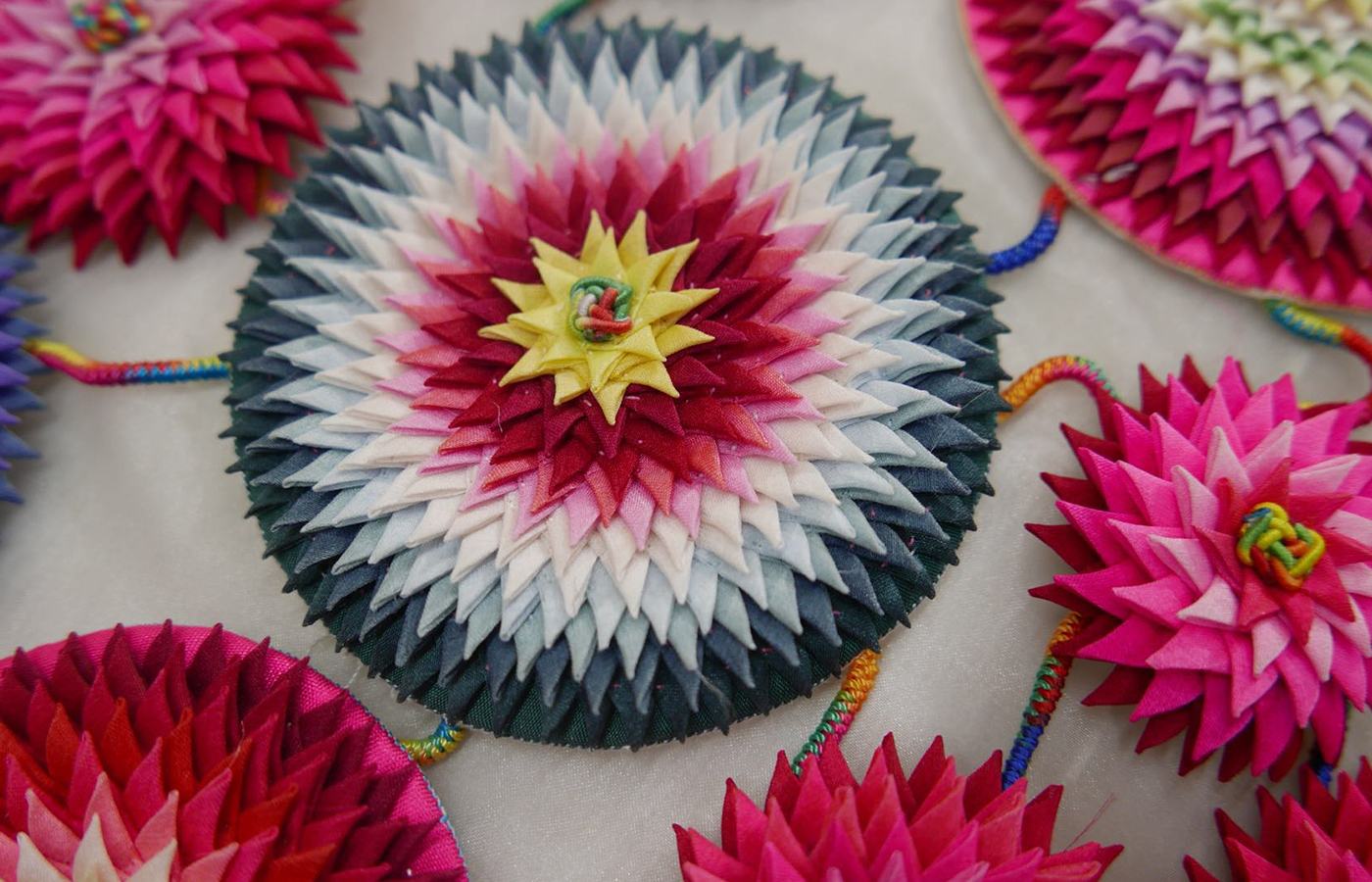 同学们参观了天工传习馆的旗袍工作室、拼布工作室、京绣工作室,以及金工首饰工作室。在杨老师的讲解和指引下,同学们开始探索中国传统技艺的魅力。在旗袍工作室内,一件件婉约柔和的旗袍让同学们长久驻足;在拼布工作室内,同学们认真观看专业老师创作出的巨型壁饰《百花争艳》;在京绣工作室里,一件件细腻的刺绣精致雅韵;在金工首饰工作室内精美的首饰更是引起了同学们的热烈讨论。随后,同学们参观了北京服装学院2019届硕士研究生毕业作品展,展览涉及珠宝首饰设计、鞋品箱包设计、色彩设计、工艺美术等内容。