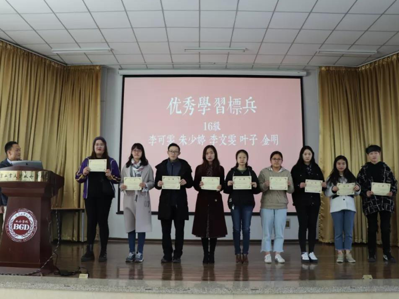 学工办负责人张淳淞老师宣布了上学期优秀学生获奖名单,对优秀学习标兵、学习进步模范和优秀班干部进行了表彰。张老师对同学们提出了三点期望:1.要有规则意识;2.给自己定个目标;3.配合今年北京市的城市安全管理工作,注意规范个人的言行。