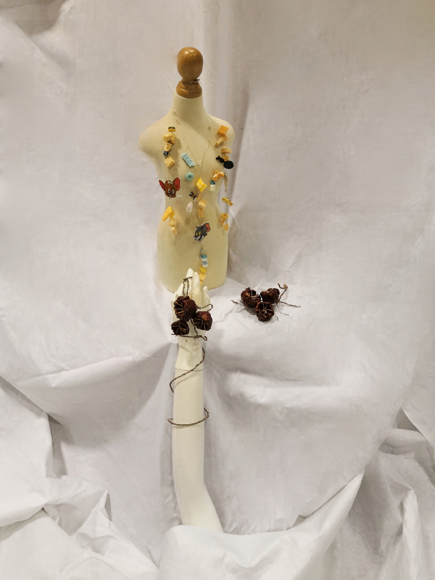 此次课程展览旨在培养同学们创意发散思维、设计风格把控与材料认知掌握三者的结合,对首饰、配饰产品进行佩戴形式创新,为今后的学习打下坚实的基础。