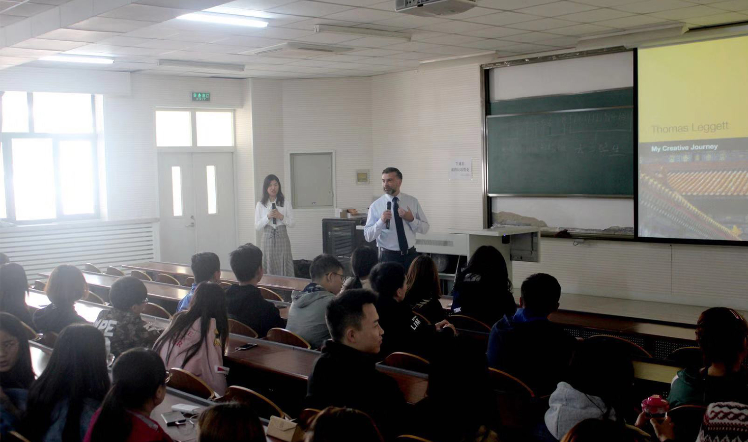 On October 24, Professor Thomas Leggett of the Dublin Institute of Technology (DIT) of Ireland was invited to give a lecture on environmental design at the GAD. Professor Thomas Leggett is a senior interior designer, retail space designer and founder of The Mad Blue Fish Design Company. Chen Lin, director of environmental design programme, the instructor Wang Hongzhou and Zhao Yinuo, led the students to participate in this activities, and Yang Na, an English teacher, took the post of translator.