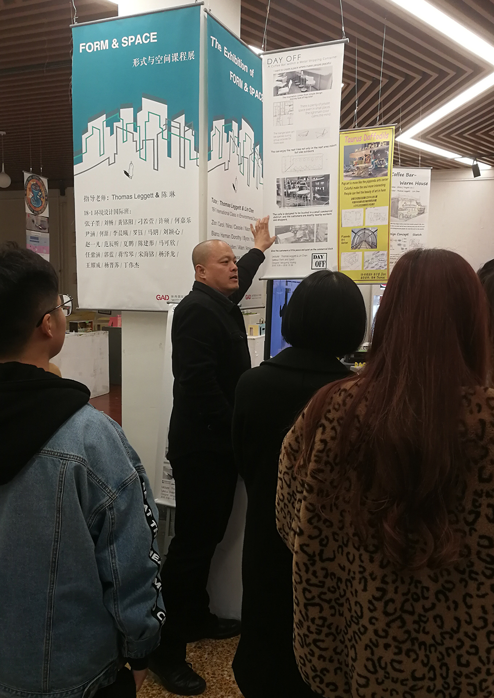 International class of Environmental Design kicked the start for the course exhibition of Form & Space on 26th October. Lin Zijie, dean of GAD, Thomas Leggett, professor of DIT and Chen Lin, program leader of the international class of Environmental Design all participated in the exhibition. Form & Space, as the first designing course for the international class, is taught jointly by Thomas Leggett and Chen Lin.