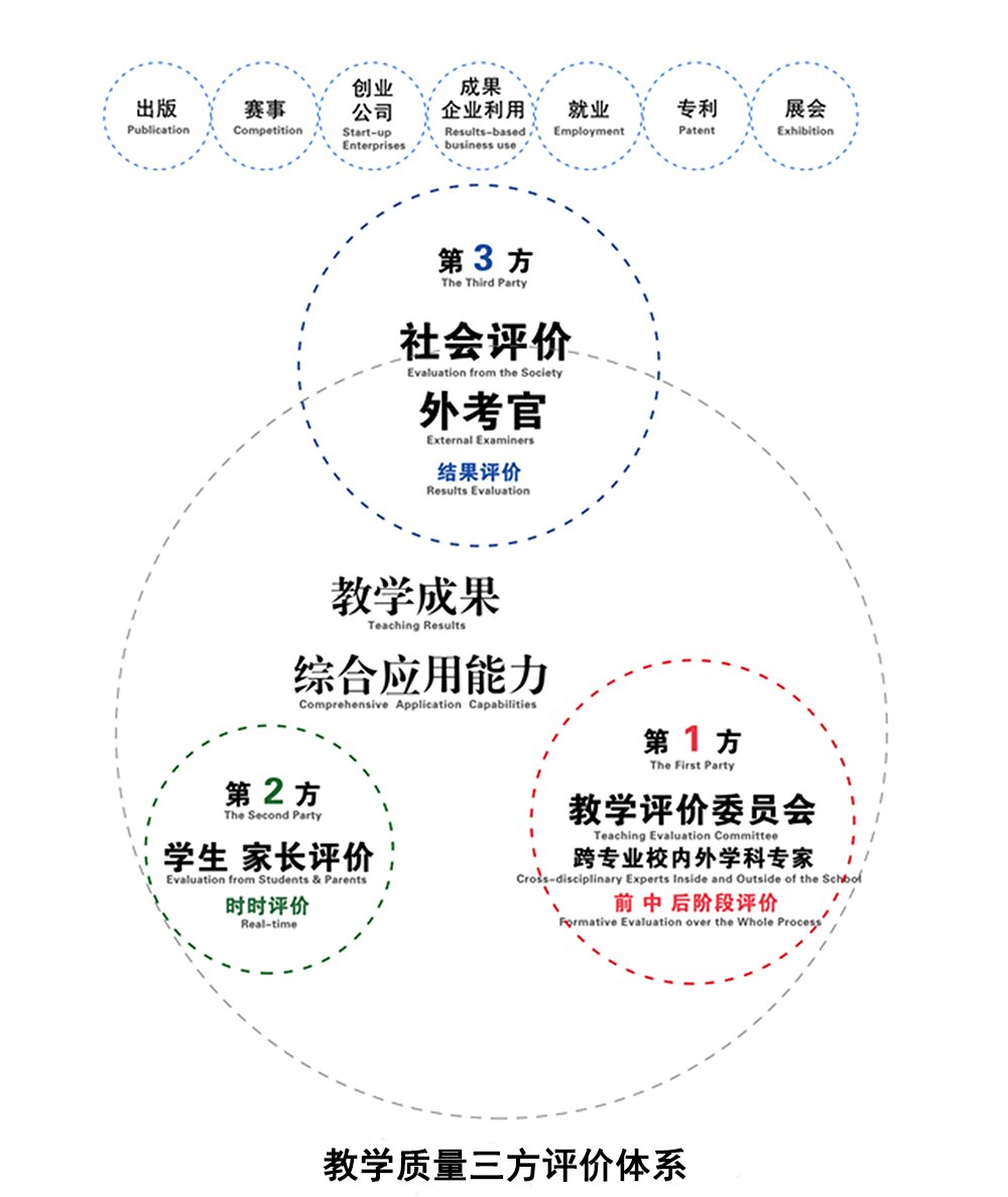 The Academy adheres to the principle of open-door education. On one hand, it has designed a intensive practical teaching plan divided into four phases according to the academic year: social practice, cognitive internship, professional internship, and graduation internship, ensuring that school teaching maintains interaction and connection with societal needs and industry development. On the other hand, the Academy invites industry designers with projects to establish school-enterprise cooperative studios (design centers) within the school, guiding students' course learning with topics (projects), and enhancing the experience of applying what they have learned. The Academy has now established cooperative relationships with more than 100 enterprises, such as Guangdong Shunde Industrial City, Artron Group, CCTV, Dassault, China Sky Eye(FAST), Founder Type, Huacan Award, Gooest Technology, Shengxun Information Technology, Hongjing Weizhu, JD.com, and others.