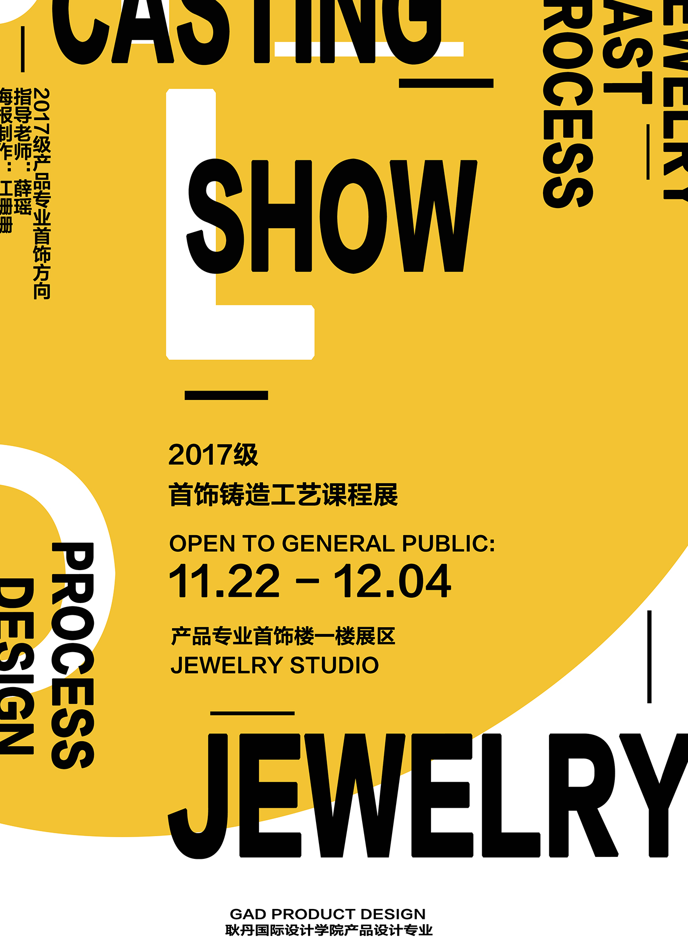 耿丹国际设计学院产品设计专业2017级学生于11月22日在首饰工作室一层举办“首饰铸造工艺”课程展览。本次展览的作品包含27名首饰设计方向的学生设计并制作的30余件首饰作品,课程指导老师薛瑶。