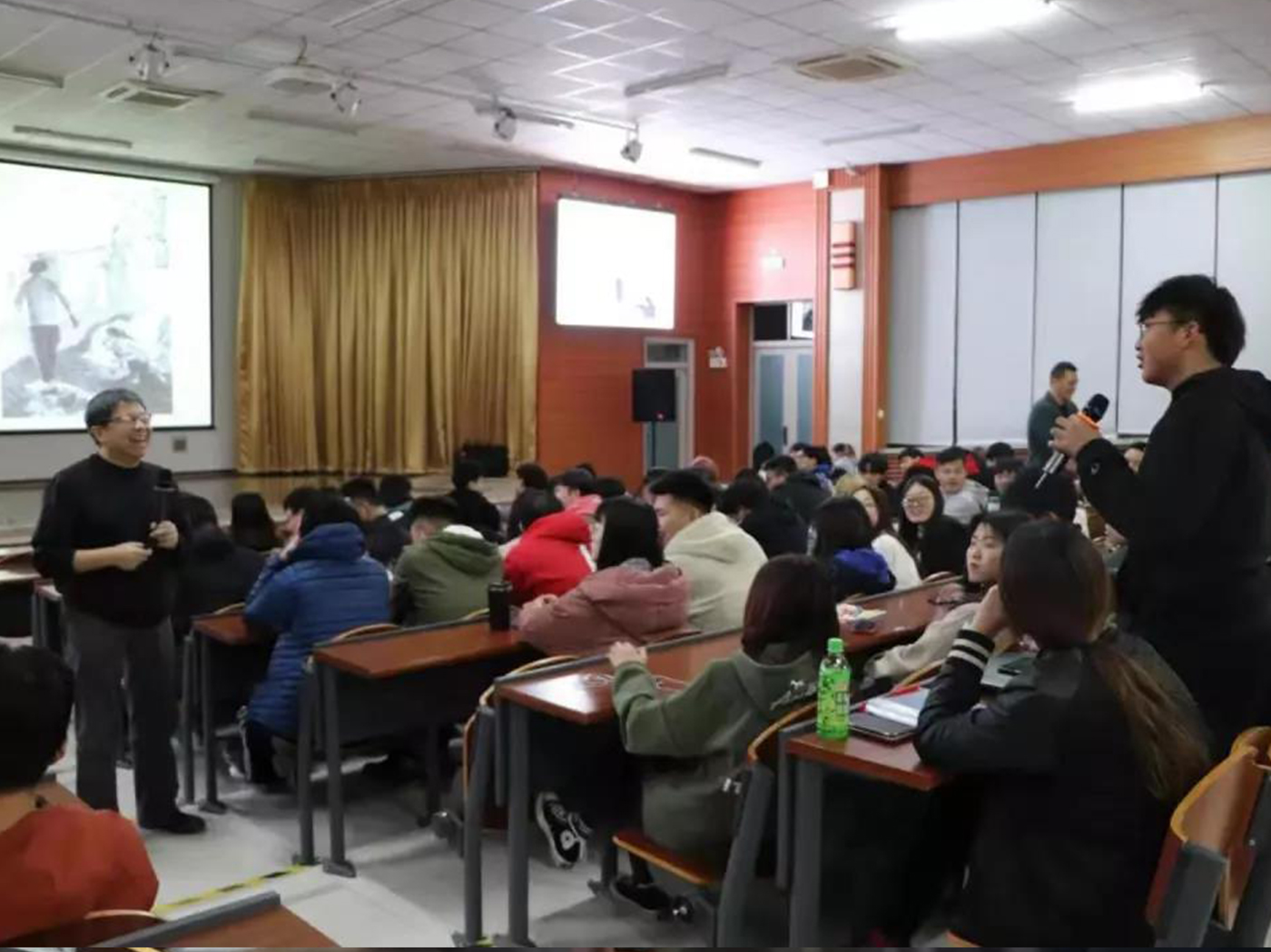 Students actively asked Professor Ji Yu how to draw sketch, how to grasp the composition of sketch, how to deal with the relationship between philosophy and art in painting or design works, and expressed that in future study, they should also observe life attentively, record life with sketch, persevere, and guide future creation. Professor Ji Yu urged students to lay a good foundation in their future study and life, adhere to English learning, read more books, and increase their humanistic accomplishment.