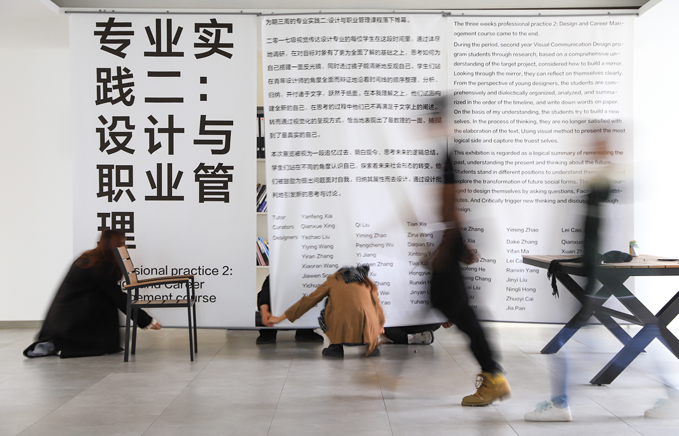 On November 23rd, the 17th grade students of Visual Communication Design of Qidan International Design College held the “Professional Practice 2: Design and Career Management” ending exhibition in the lecture room of the Innovation Space, and the course instructor Xia Yanfeng.
