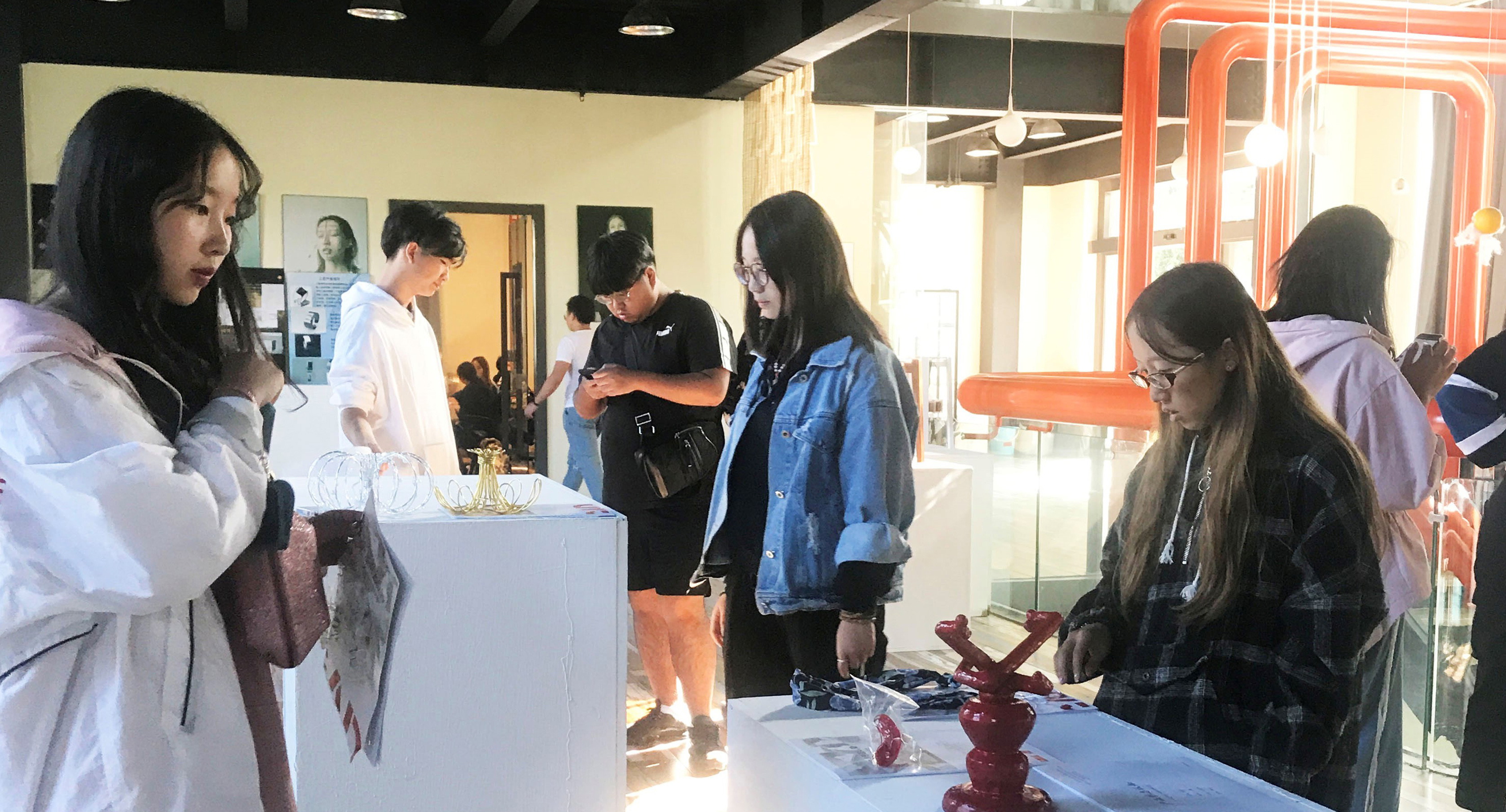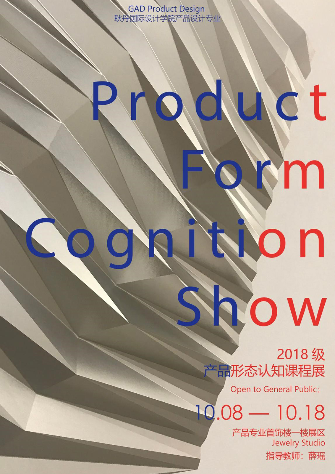 2018年10月8日, 耿丹国际设计学院产品设计专业举办“产品形态认知”课程展。展览了76名2018级艺设和戏影的学生创作的二维平面元素提取过程、三维立体结构转化和功能化产品认知的课程汇报书和产品实物模型,课程指导老师薛瑶。