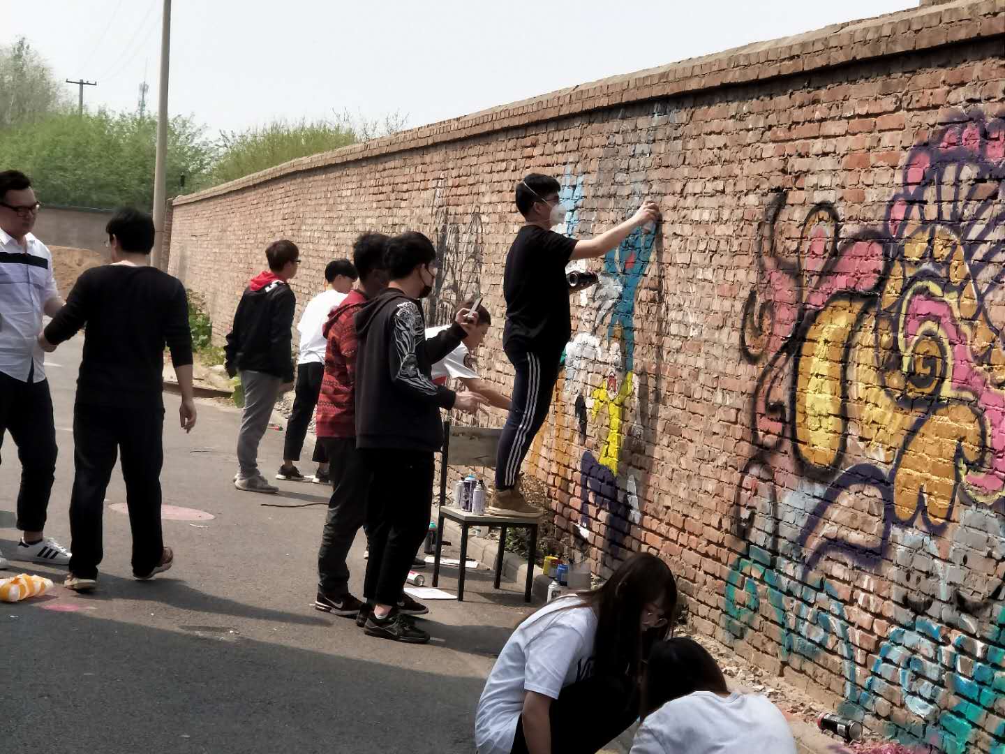 2018年4月19日,我校国际设计学院视觉传达专业苗慧老师与数字媒体专业高联国老师带领数媒17级的学生到北京塞隆国际文化创意园进行墙体绘画。
