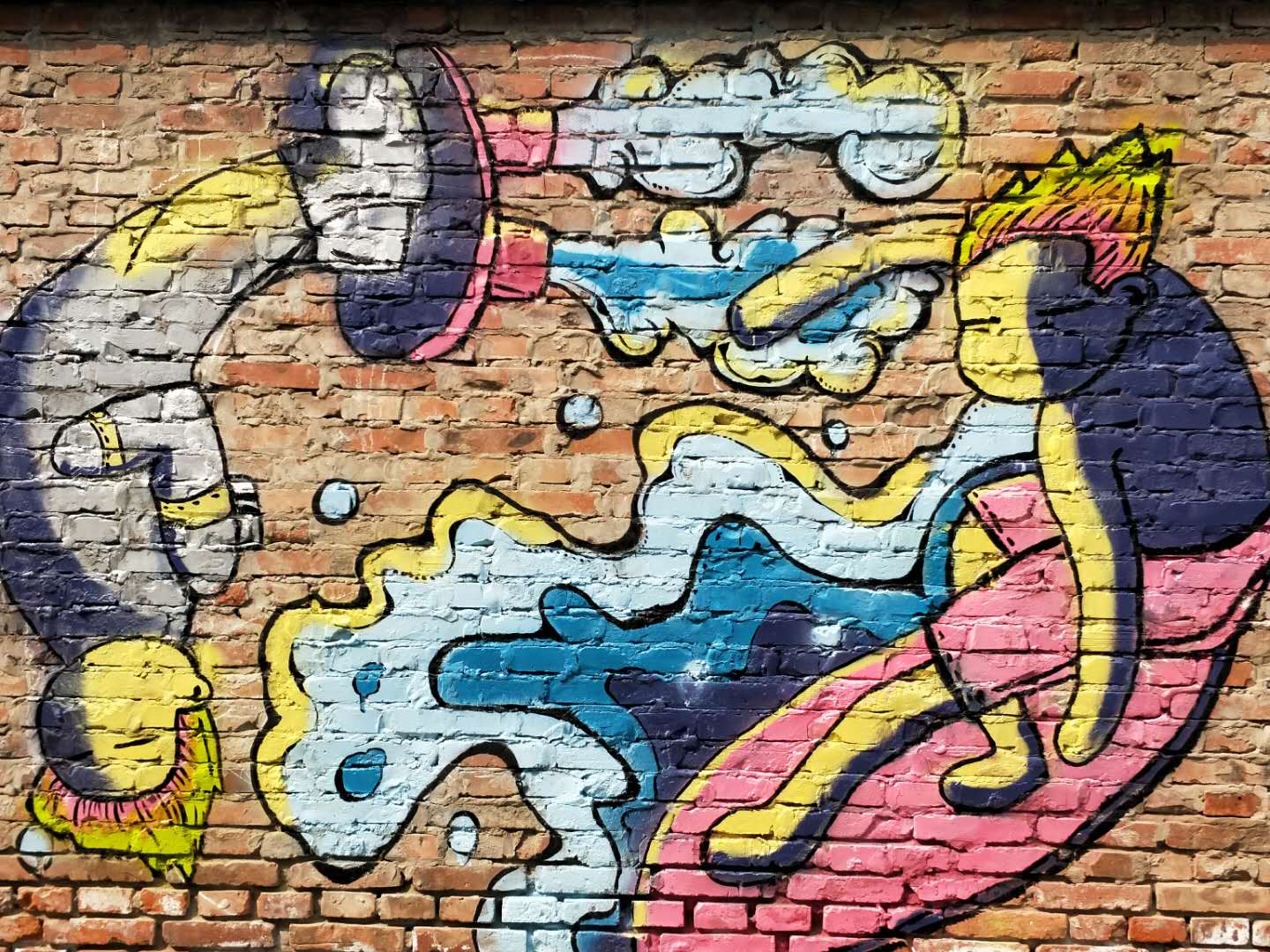 这次墙绘活动,同学们自备午餐,虽然气温很高,丙烯的气味很难闻,不少的同学身上都挂满了颜料,但丝毫没有挥去同学们的热情与积极性。 经过约4个小时的努力,7张墙绘涂鸦也终于完成。