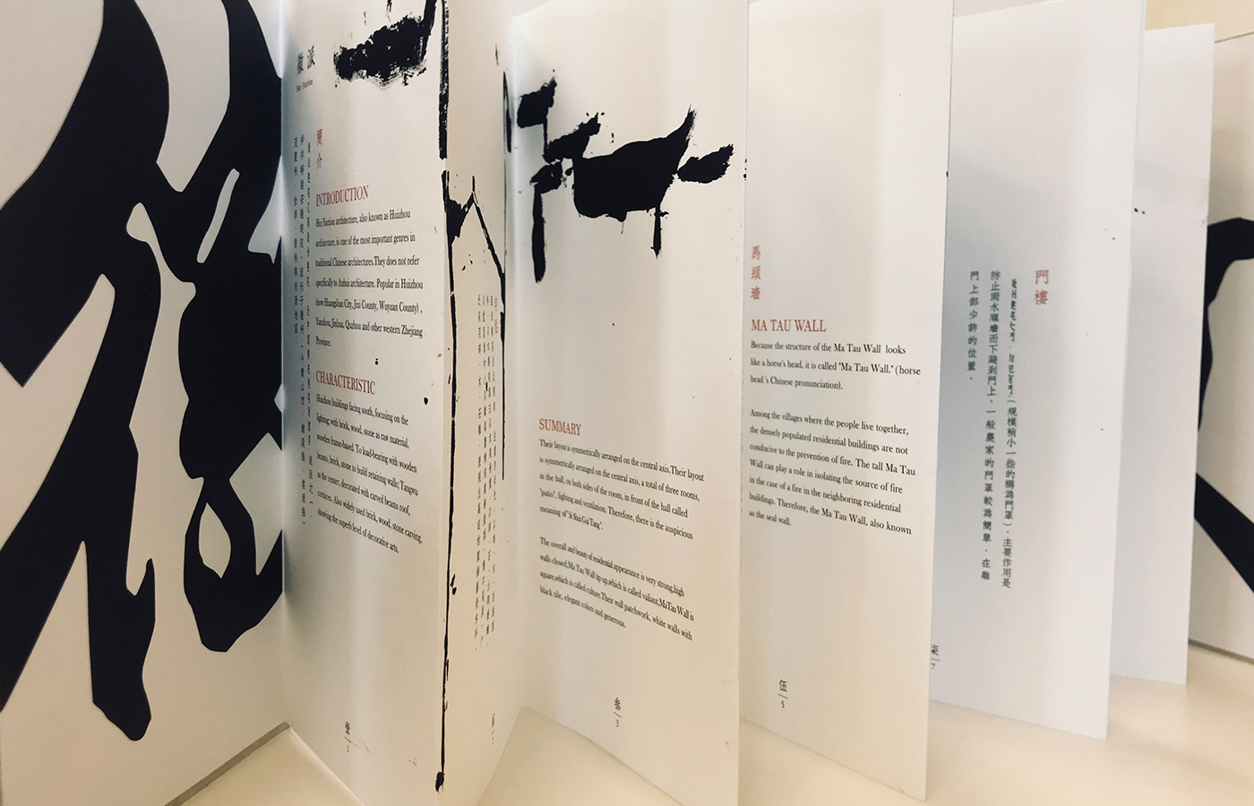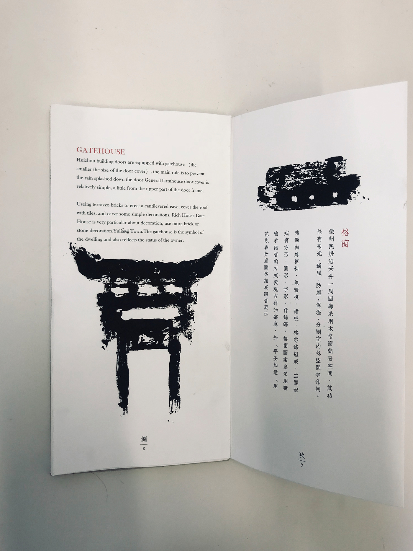 The second work is the typesetting and book binding design with the characteristics of Chinese traditional architecture. For example, Hui style buildings adopt the characteristics of horsehead wall and green tile white wall. Beijing style buildings adopt the layered characteristics of the courtyard, which highlights a sense of hierarchy by the way of binding each layer on one page.