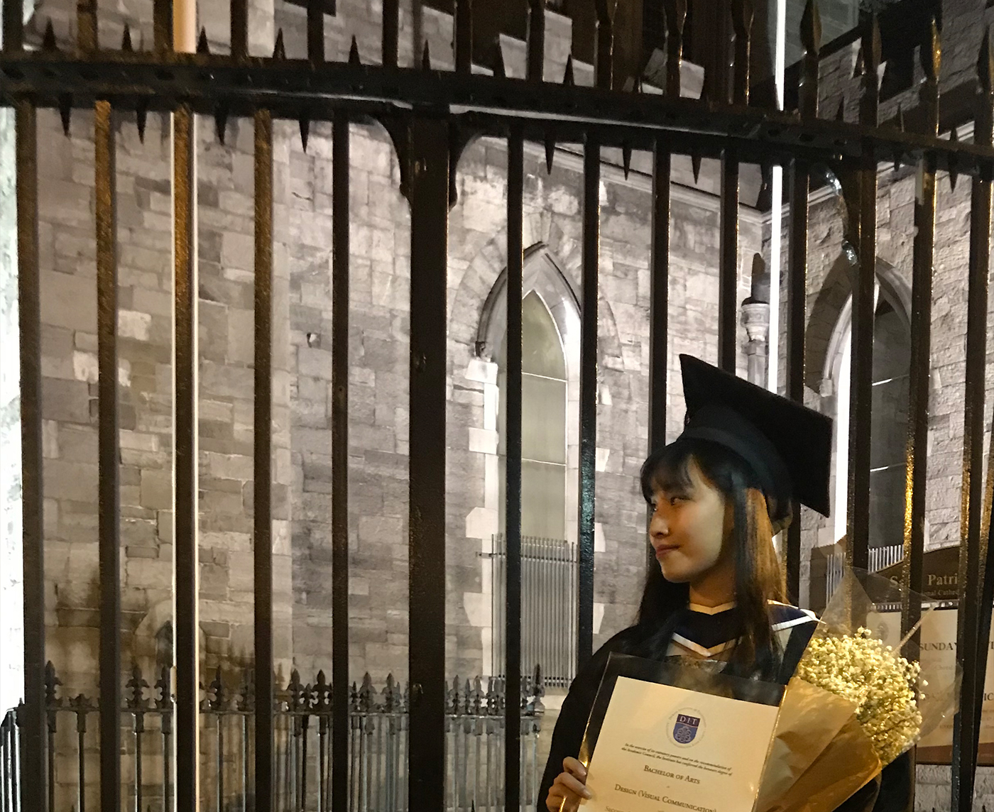 阮梦韩是耿丹国际设计学院2014级视觉传达设计专业毕业生,2017年参加爱尔兰都柏林理工大学(DIT)的双学位项目,2018年11月获得学位证书。