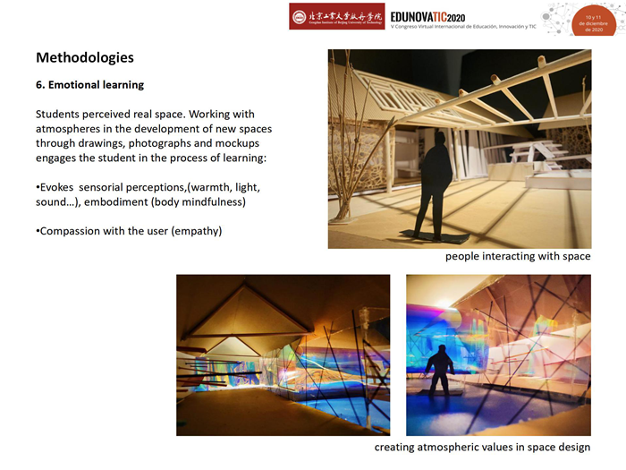 基于beat365英国官网环境国际的共同教学尝试,陈琳与Juan 以这三年的教学探索为主题共同完成论文“Developing Spatial Intelligence through Creative Methodologies for Environment Design Students in China”,并在西班牙时间11时完成了现场陈述发表。