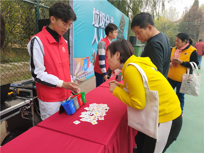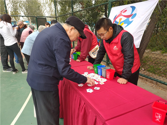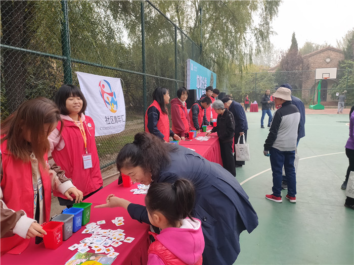 活动开始前,14名志愿者被分为垃圾分类知识普及组、篮球投篮组、丢沙包组和礼品发放组等4个活动小组。为保证活动的顺利进行,各个小组提前到达指定位置开始做准备工作。活动开始后,各小组志愿者们各司其职。垃圾分类知识普及小组为社区居民普及垃圾分类的基础知识,让居民掌握基本的分类方法。篮球投篮和丢沙包两个游戏小组组织社区居民参与游戏,寓教于乐,让居民在游戏中学会应用刚学到的垃圾分类知识。礼品发放组负责组织居民有序领取活动纪念小礼品。最后,志愿者们自觉将活动用具归类整理交到指定地点。学生党员和积极分子细心周到的服务得到了社区居民的一致好评。