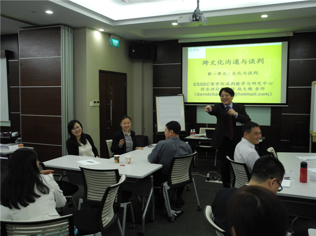 首先,赵大维主任设计一个精妙的纸牌游戏,让所有学员参与其中,通过分组游戏,互动中开启了他们的跨文化谈判课程。在游戏中最关键的点是差异化的规则,最痛苦的点是不能有效沟通,通过纸牌游戏让大家对跨文化交流的问题有了深刻的理解。然后,赵主任通过一个真实的案例,开始让学生进行模拟演练,通过背景材料的准备,学员扮演相应角色,身临其境地投入到整个案例的谈判当中,一改以往沉闷的理论式授课方式,学习气氛非常热烈。