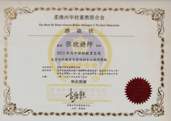 新加坡、马来西亚的实习学校共20所,均为当地知名的中小学校。每位实习生配有一名当地指导教师,实习生需要跟随当地华文教师走进课堂听课学习,逐渐了解并适应当地的华文授课方式。三两天之后,实习生便正式登上讲台,以当地华文教材为基础独自授课。实习生们谦虚进取的态度,以及勤勉的作风得到了新加坡、马来西亚学校的认可。我院8名赴马来西亚实习的同学,全部获得由马来西亚柔佛州国中华文教师联谊会和柔佛州华校董教联合会颁发的推荐信,获此推荐信的优秀学生将有机会赴马来西亚任教,真正成为驻马华文教师,这封推荐信也是同学们未来从事汉语国际教育的通行证。1名赴新加坡实习的同学,也获得了新加坡学校的实习证书。