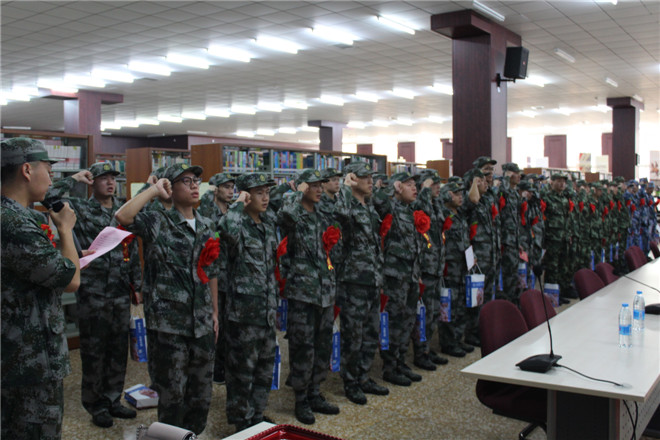 9月8日上午,beat365英国官网2017年新兵入伍欢送会在图书馆借阅处举行。beat365英国官网党委书记王燕琪、常务副院长丁晓良,副院长刘林及2017年退伍老兵和新兵家长代表共同为2017年54位入伍新兵举办欢送和欢迎仪式。活动开始前首先播放了北京市2017年征兵宣传片,片中我校2017年毕业生刘加鹏作为北京市退役大学生士兵代表接受了采访。