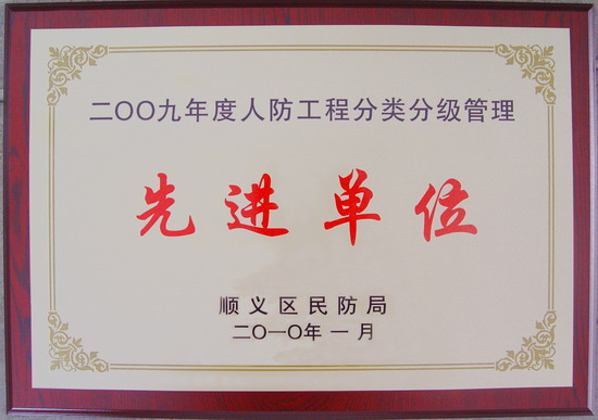 我院被顺义区评为2009年“人防工程管理先进单位”
