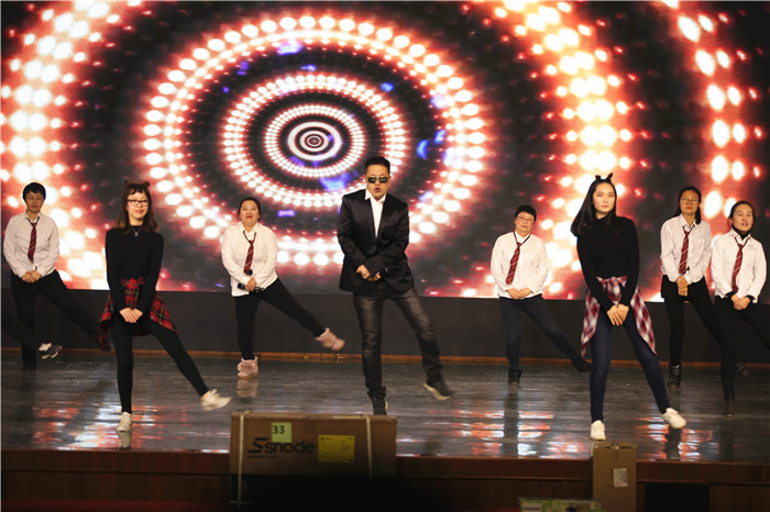 晚会在保洁阿姨的《今夜舞起来》的旋律中拉开帷幕,热情的歌声带着浓厚的幸福感燃爆全场,表达了对新一年美好的展望。常务副院长丁晓良的一曲《天边的骆驼》唱出耿丹人的心声,“沉甸甸的骆背上,骆着它的希望”,弘扬了“无私奉献”的优良品格。耿丹克丽斯幼儿园的小朋友跳起了欢快的舞蹈《春晓》,孩子们用天真无邪的迎接新一年的到来。本场晚会最夺人眼球的要数国际商学院带来的歌舞《耿丹的老师》,劲爆的舞步、打动人心的歌词唱出了全体耿丹人的理想与追求。
