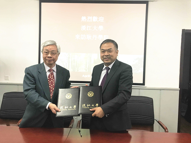 我院常务副院长丁晓良对吴锦全执行长一行表示欢迎。丁晓良副院长对我院教育理念、发展目标、创新的组合学分制、教师培训进行了介绍。吴锦全执行长对淡江大学社团发展,全英文授课以及国际化,资讯化,未来化进行了详尽的介绍。会议签署两校首次合作协议,淡江大学表示欢迎优秀的耿丹学子到淡江大学学习交流。