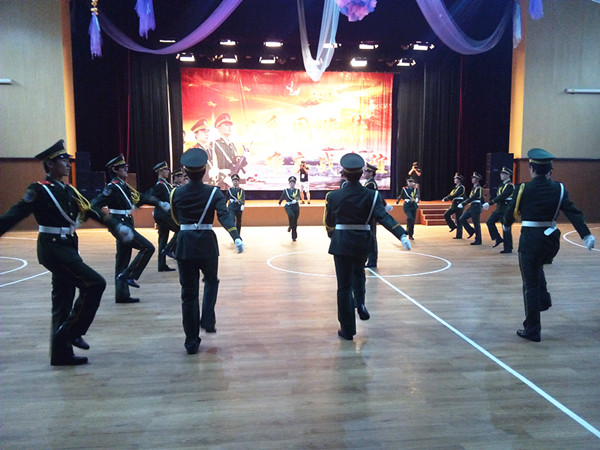 首先,各校国旗班进行队列动作展示,我院国旗班第三位出场。在国旗班班长任旭东的口令下,国旗班队员动作整齐划一的向到场的其他兄弟院校展现了我院的风采。接下来是各校国旗班才艺展示,我院国旗班队员赵之鉴同学展示了一段活力四射的街舞,赢得了全场多次的掌声。