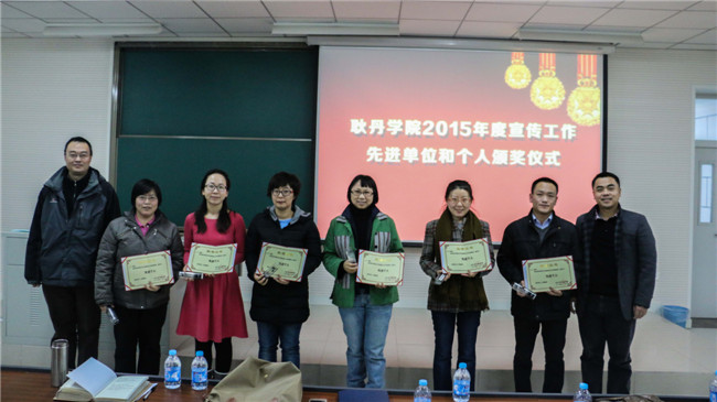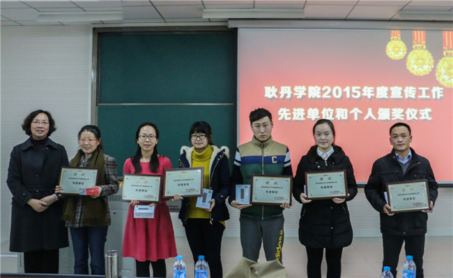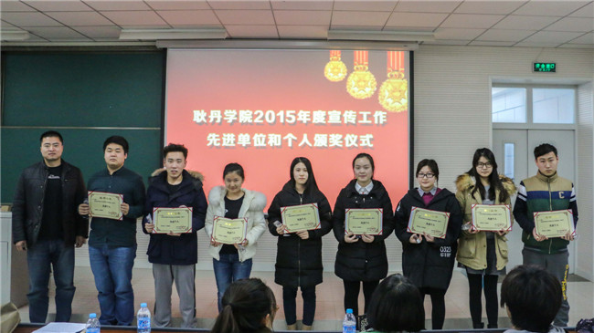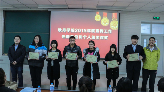 本次会议表彰奖励了在2015年度新闻宣传工作中作出突出贡献的先进单位和个人。其中,授予艺术设计系,国际合作与交流处,学生工作处,大学生记者团,国际部学生助理团,广播电台等六部门和学生组织“先进单位”荣誉称号;授予郑莹、付瑶、王小宇、张淳淞、张璐璐、冯郭莉等六位老师,及郎琦、牛思雨、王颖彤、贾赛赛等15名同学“先进个人”荣誉称号。并为这些获奖的单位和个人颁发了奖状、证书及奖品。获奖教师代表张淳淞老师,及学生代表郎琦同学在接受嘉奖后发表了获奖感言。