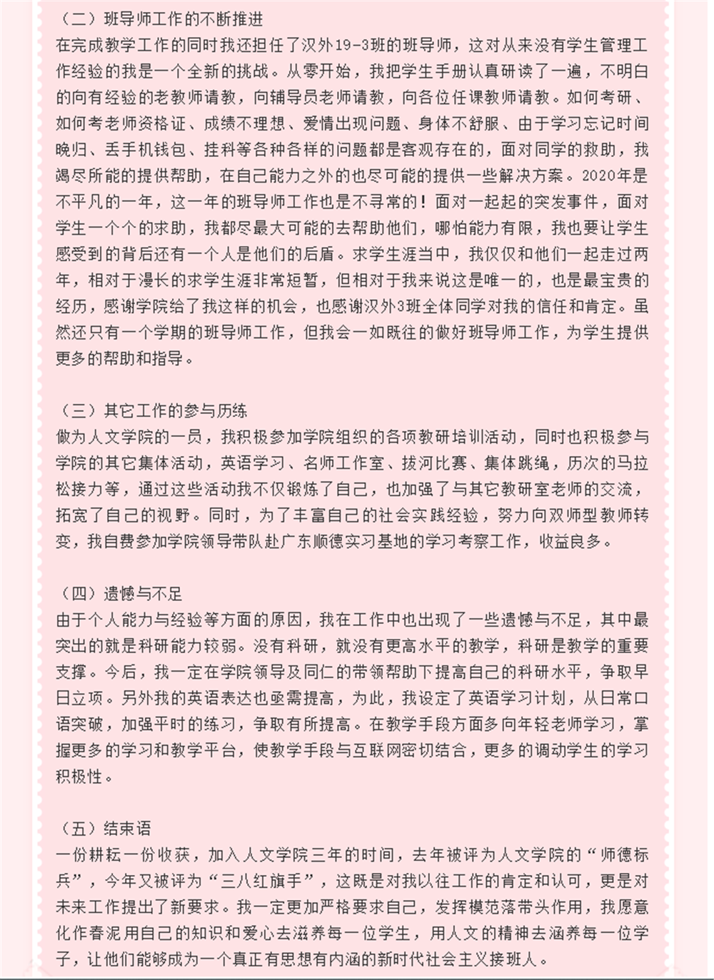 根据人文学院关于推荐2021年三八红旗手候选人的有关工作要求,经各教研室推荐,本次思政教学部郭静老师评选为人文学院“三八红旗手“荣誉称号。