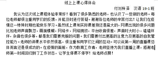 一天之计在于晨,24日是网上课堂开课的第一天,人文学院开局顺利,老师、学生也在摸索和磨合,这种新的学习方式也让老师、学生有了新的教学体验。