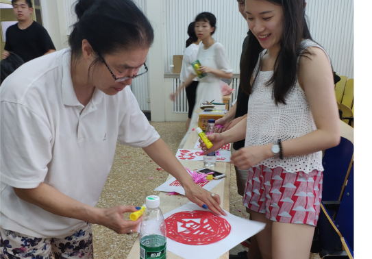 第二部分的文化及文化教学与体验,同学们对于体验兴趣盎然。国画,太极,中国结,剪纸等这些都是中国文化的载体,学生们一边学习一边实践。
