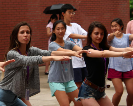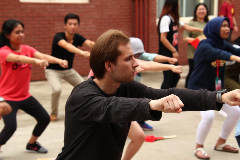 来自世界各地的留学生们对中华文化也是有着如夏日艳阳般的热情,从中国舞到太极拳,从凤凰三点头到野马分鬃,扇穗儿在空中舞动,阴阳在行云流水间生成。留学生们在呼吸和步伐间感受到了别样的中国魅力。