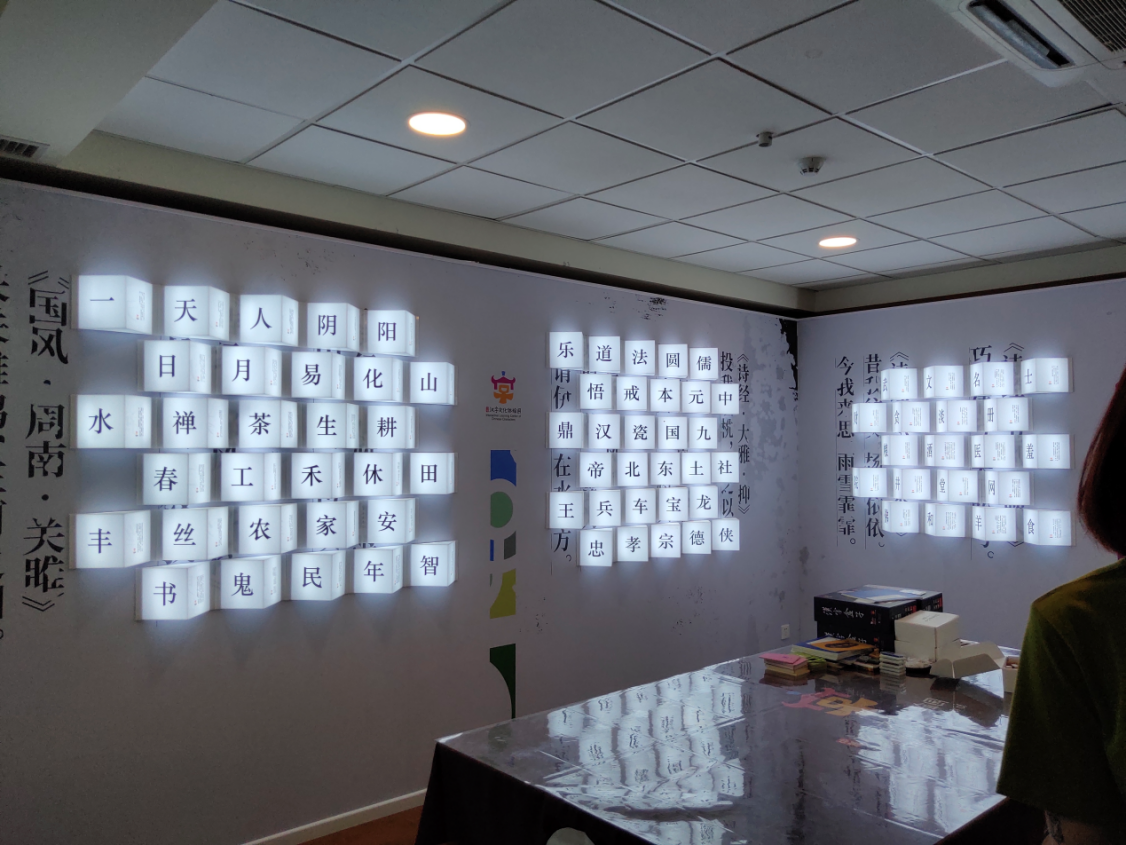在观摩学习的途中,刘彦老师一直向大家介绍体验园建设理念以及体验形式,老师们先后观看了汉字简史、拓币识字、字里林间、成语达人等16个体验坊,无不被激起浓郁的兴趣,并结合老师自身的教学实践各抒己见,希望能将其所蕴涵的丰富内容运用到汉语国际教育实践中。