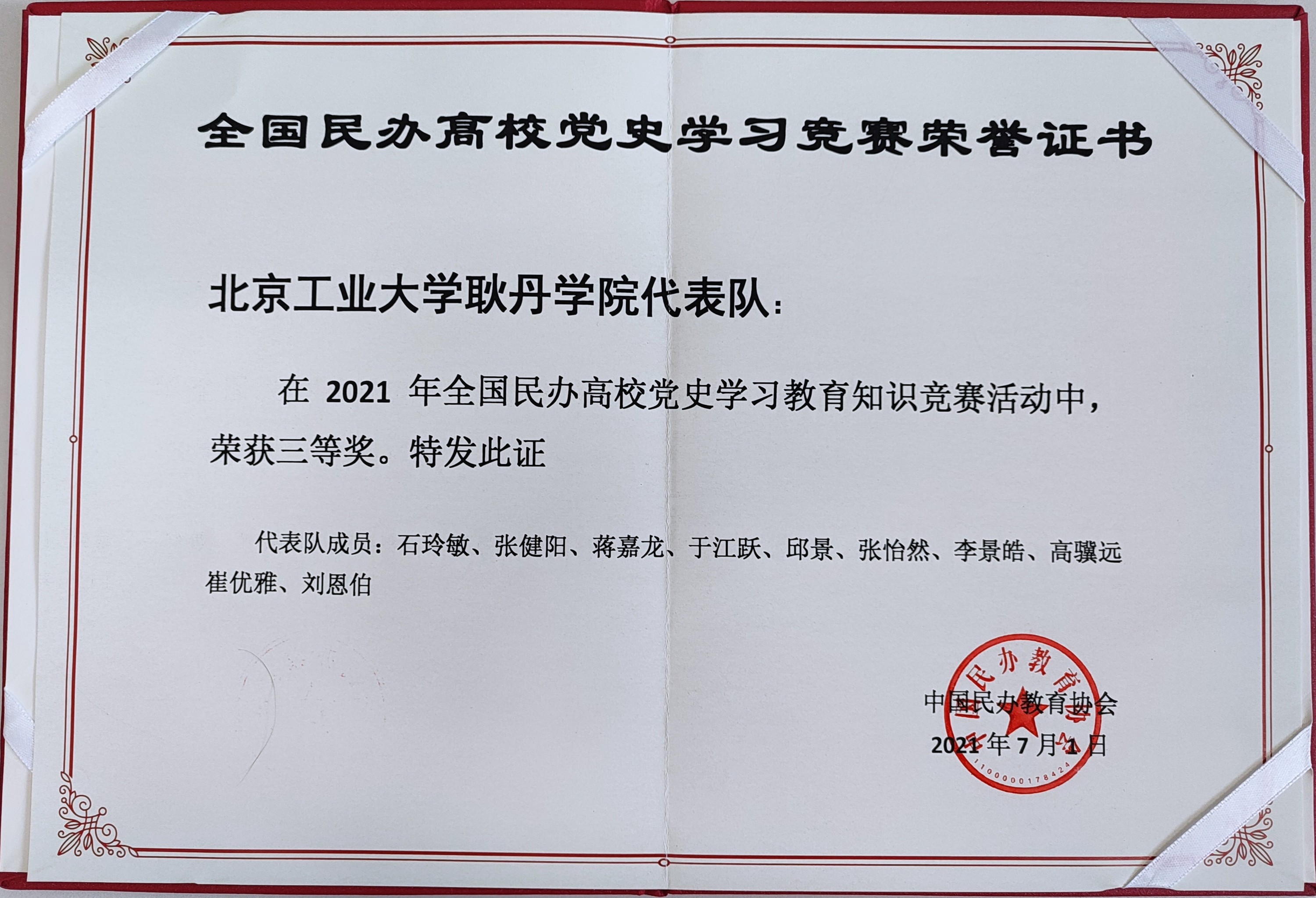 全国民办高校党史学习竞赛三等奖