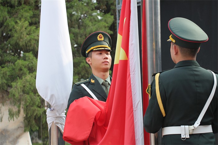 在庄严激昂的国歌声中,五星红旗冉冉升起,全场师生怀着激动喜悦的心情,一同高唱国歌,注目凝望。人文学院2018级社会工作专业范一楠同学在国旗下进行了《永远跟党走,奋进新征程》的主题演讲,她表示作为新时代青年,我们要回顾党的百年历程和学习党史知识,做到学史明理、学史增信、学史崇德、学史力行;要肩负起党和祖国人民的重托,从党的百年奋斗历程中,汲取继续前进的智慧和力量,坚定不移地跟党走,勇做走在时代前列的奋进者,开拓者,奉献者,让青春在为祖国,为人民,为民族的奉献中焕发出绚丽光彩!