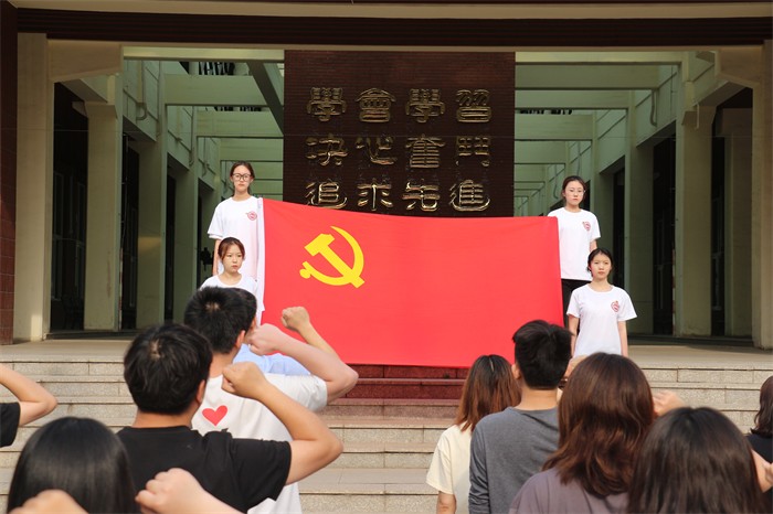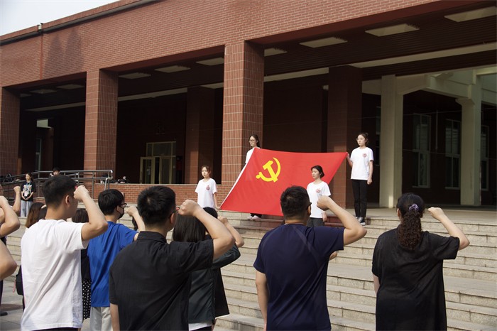 最后党委副书记孙磊发表讲话。他表示用庄严的升旗仪式表达对党的赤诚和祝福,活动光荣,意义重大;只有共产党才能救中国,百年党史是不能忘却的壮丽篇章,是奋勇前进的精神力量,青年学生要从党史学习中汲取智慧和力量,传承好红色基因,肩负起时代使命;青春心向党,永远跟党走要体现在学习党史、学习红色原著的自觉和求知欲上,体现在入党申请和思想汇报撰写的严肃思考和认真勤奋上,体现在平时学业学习的勤奋努力上,体现在做学生工作、开展志愿服务的无私奉献和高质量要求上。最后向青年学生提出两点希望:一、希望青年学生对党和国家怀着赤诚、赤胆忠心去衷心的祝福;二、希望青年学生将青春热血融汇为江海,推动着党的巍巍巨轮领航国家和民族实现中华民族伟大复兴的中国梦。