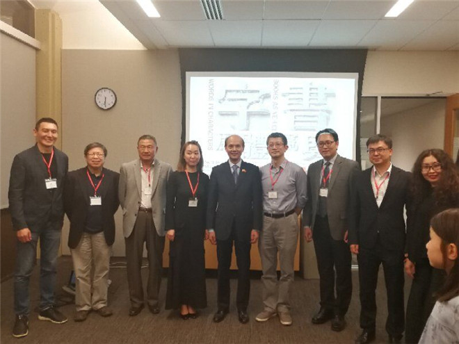 当日下午在斯坦福东亚图书馆学术报告厅举行的学术会议,特邀肖勇教授、斯坦福大学教授谢晓泽、著名评论家Jeff等专家从艺术和设计的角度,讲述艺术创作与文字和书籍之间的关系。到访的中美两国参展艺术家就各自的艺术创作经历分别发言。