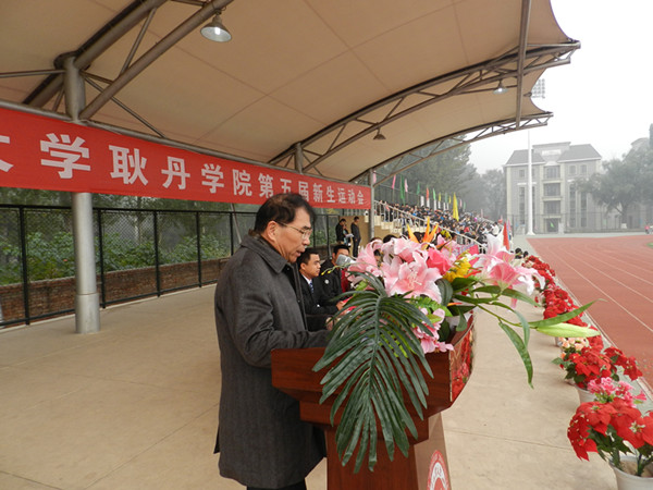 学院领导甘德安,刘军,刘林,李永军、沈自友及各系部主任出席开幕式。开幕式由党委副书记沈自友主持,甘德安院长致开幕词。他说,过去的几年里,我院在教育教学、科研、体育等方面均取得了可喜的成绩,学院田径、篮球、乒乓球、健美操、羽毛球、橄榄球代表队在近几年首都高校和全国比赛中均获得了优异成绩,为学院挣得了荣誉,也带动了我院群体活动的开展。但我们也看到,我们全体学生的体质健康状况不容乐观,我们同学的健康生活方式和参与体育锻炼的意识有待提高。2015年10月首都高校第七届学生田径运动会将在我院召开,届时将有超过1500名首都高校学生来我院参会,希望借助运动会契机能够提高学生爱运动的意识和兴趣。