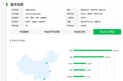 3.大数据显示,金融工程专业毕业生,大部分选择北上广深一线且经济发达的城市工作,发达城市对于行业发展来说,金融是价值的创造、转化与实现,在一线的城市经济发达行业内