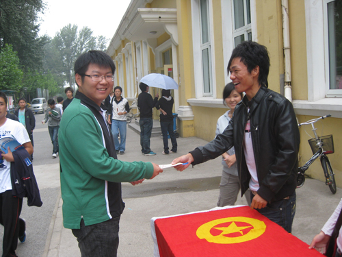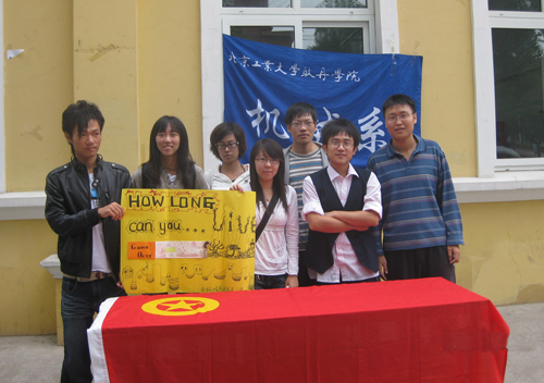 活动期间,在学生第一、二食堂门口向全校师生分发控烟、禁烟书签,并向机械工程系各年级宿舍分发控烟、禁烟标牌。