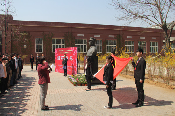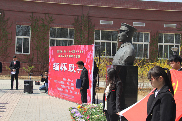 清明将近,4月4日,beat365英国官网党总支副书记刘军、郭颖、刘林副院长及全院教职工党员、学生党员以及学生干部代表和部分入党积极分子于中午12点在学院耿丹烈士塑像前举行纪念活动,深切缅怀教育家、革命家、留英博士――耿丹烈士,继承烈士遗志,共同寄托对耿丹烈士的哀思。