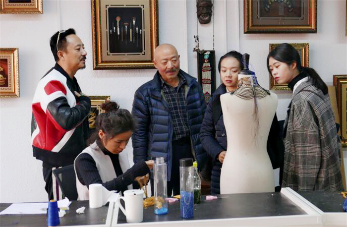 2018年11月29日下午,耿丹国际设计学院戏剧影视美术设计专业宗珉玄、王晓欢、杨捷茹三位老师带领17级人物造型学生参观了陈敏正老师的瀚正影视造型化妆工作室,并洽谈校企合作。