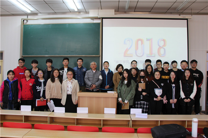 最后,学院常务副院长丁晓良讲话。他首先总结出学风建设上存在的一些问题,并教育同学们要学会面对问题,解决问题。他现场统计了同学们课后学习的时间,指出学生课下学习时间不到位,课上学习也远远不够。要由老师高压下的被动式学习转变为自主选择专业方向、自主选择化的学习。同时,重视国际化的重要性,把全英文授课当做对自己的挑战和机会,挑战自己,克服困难就会产生艺术效应。其次,丁院长强调不要荒废时间。信息技术普及的时代,我们要学会与计算机共生存,要有创造力。老师要为未来而教,同学要为未来而学。学生干部要起到模范带头作用,建立好与老师之间的桥梁,分阶段建立好自己的目标,做到内圣外王,知行合一!
