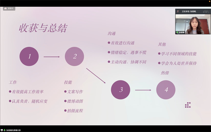 答辩过程中,各位毕业生具体介绍了自己的实习单位、实习岗位、工作内容等基本情况,对个人实习经历进行了回顾与总结,同时与答辩评委分享了自己在实习单位的收获以及毕业后的工作计划。校外就业实习是实践教学中的关键环节,是检验学生理论知识与工作实践相结合的重要方式,也是提高学生职业素质和实践能力的重要途径。在经过周期较长的实习工作后,学生们各方面的能力都得到了提升,对自己日后的工作方向也有了更明确的规划。
