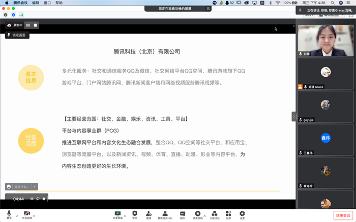 4月27日,耿丹国际设计学院数字媒体艺术专业2018级毕业生就业实习答辩工作顺利开展,本次答辩采用线上答辩的形式进行,出席答辩的评委有郑潇、徐展、李晓雯三位老师,共有38位同学参与本次答辩。本届毕业生就业实习相关单位有:腾讯科技(北京)有限公司、北京搜狐新媒体信息技术有限公司、完美世界、各省市地方电视台、融媒体中心等,学生主要从事的工作岗位有:视频剪辑、影视后期、交互设计师、新媒体运营等。