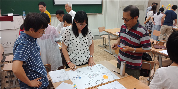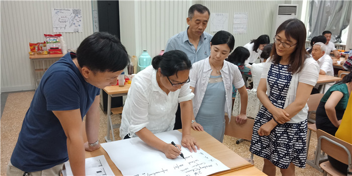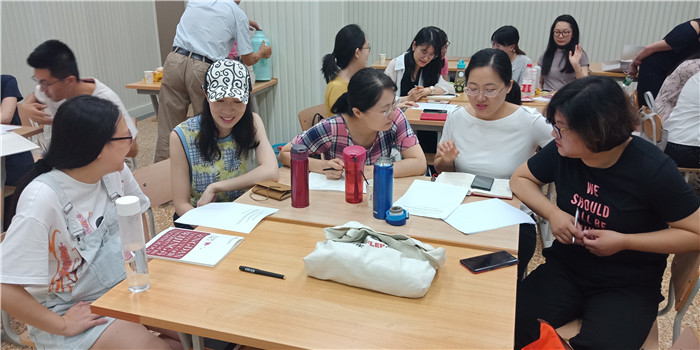 培训课堂上,Carol与教师们分享了关于教学的哲学思想、教师职业未来的设想与发展、讨论三种教学法、课程大纲及教案的设计理念、如何做好学生的评估等内容。培训以Carol教授主导,教师充分讨论和充分展示的形式相结合。每天的课程结束后,Carol教授为教师们留课后作业,并要求教师以小组或个人形式进行展示与分享。这种培训形式的课堂让教师在讨论与交流中收获了更多了体验与感受。