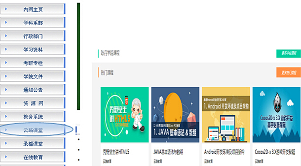同时,实践教学管理部、信息工程系联合云路公司与众多IT企业签署合作协议,将社会上众多知名互联网IT企业引进学校,为耿丹在校学生提供企业急需的实习或工作的机会,为耿丹学生与知名企业之间搭建了一条实训、实习、就业或创业孵化团队的通途。同学们可以进入学院内网主页,直接点击选择“云路课堂”即可在线免费自主学习,当学习过程中遇到任何问题需要答疑或讨论时,都可以直接与实践教学管理部或信息工程系教师联系解决。(实践教学管理部供稿)